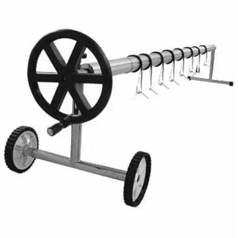 Facile à déplacer, il est également muni de freins pour bloquer les roues et vous permet d’enrouler et de dérouler facilement votre bâche.